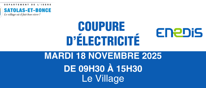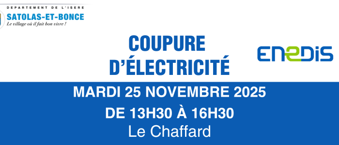 Coupure d’électricité ⚡ Enedis interviendra sur notre réseau le mardi 25 novembre entre 13h30 et 16h30. Quartiers et lieux-dits concernés : [...]