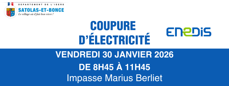 Enedis interviendra sur notre réseau le vendredi 30 janvier 2026 entre 08h45 et 11h45.
