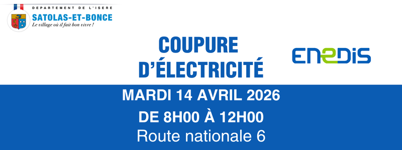 Enedis interviendra sur notre réseau le mardi 14 avril 2026 entre 08h00 et 12h00.