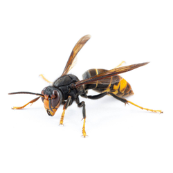 Il est également caractérisé par la présence d’une ligne dorsale blanche le long de son thorax. Ses pattes sont également rayées.